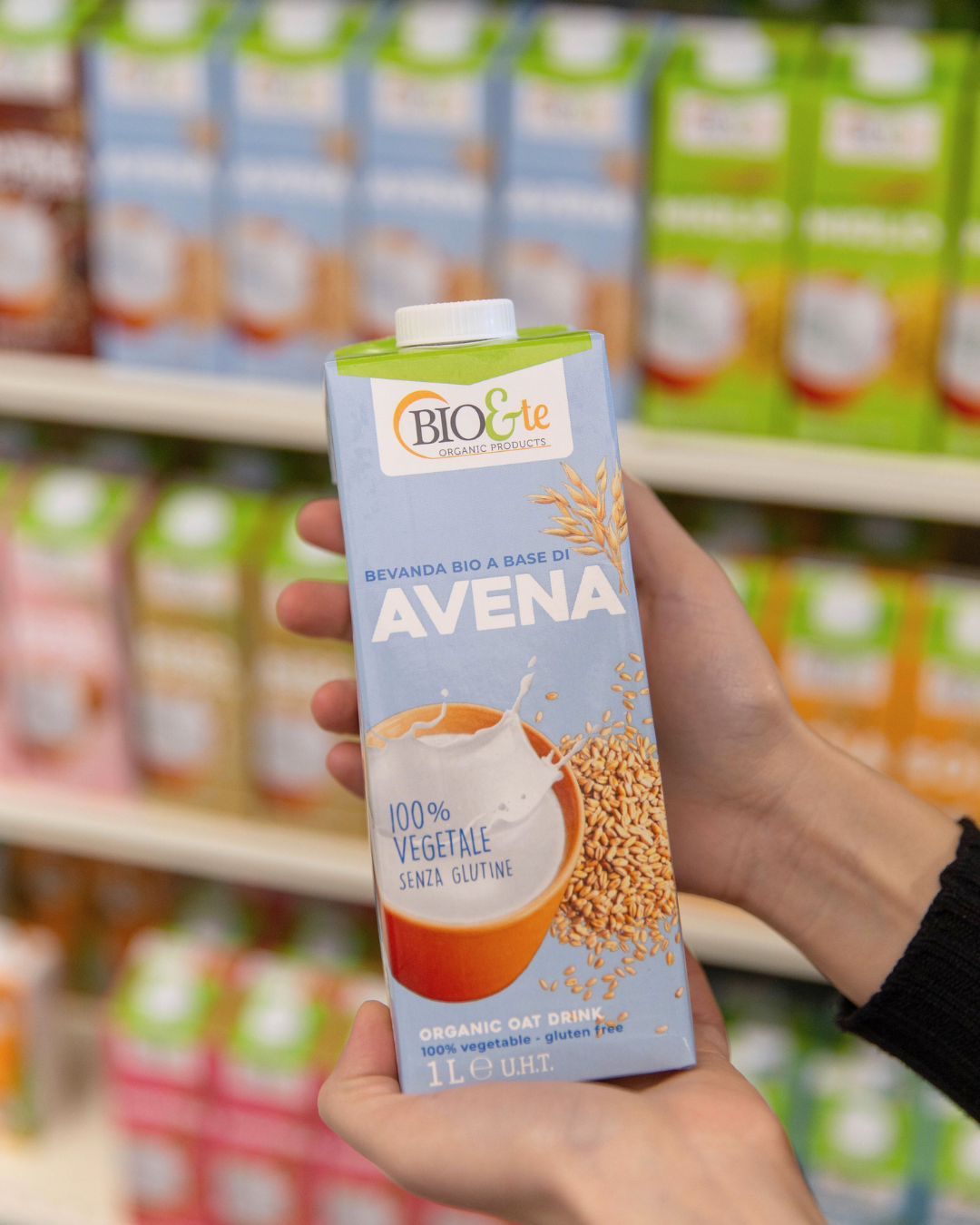 vegetali (riso, avena, soia, mandorla), cereali e snack bio per la colazione, ideali per chi sceglie uno stile di vita vegano, senza lattosio o senza glutine.
